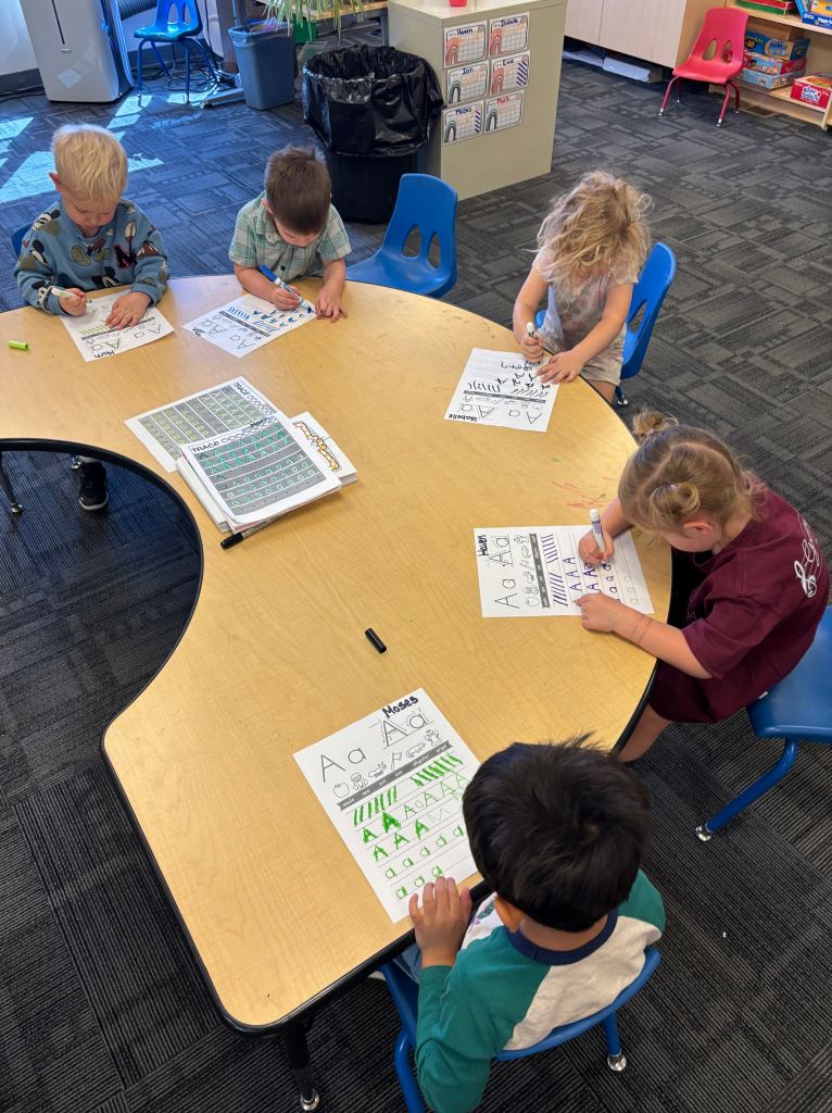 - Communication: Participation in class discussions and foundational handwriting.